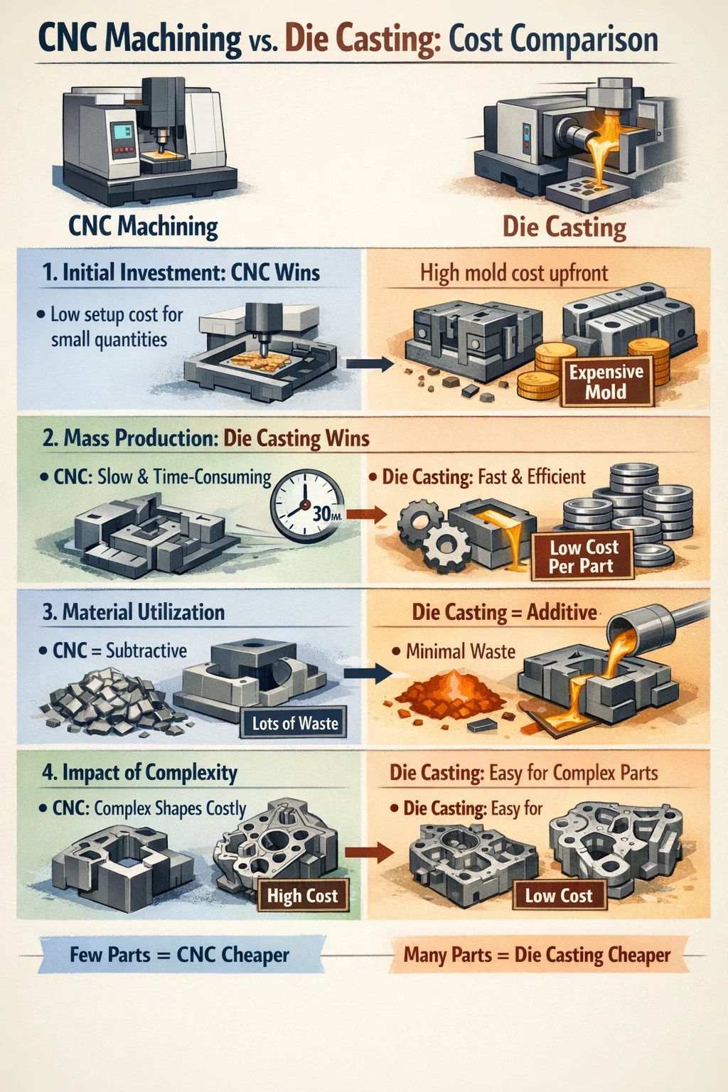 Quant à savoir si le moulage sous pression ou l'usinage CNC est moins cher, la réponse dépend en fait du nombre de pièces que vous envisagez de produire.